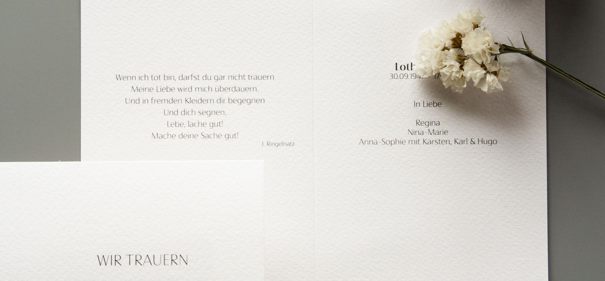 Ich möchte Sie darin unterstützen, in dieser für Sie herausfordernden Zeit, die für Sie stimmige Trauerpapeterie umzusetzen.