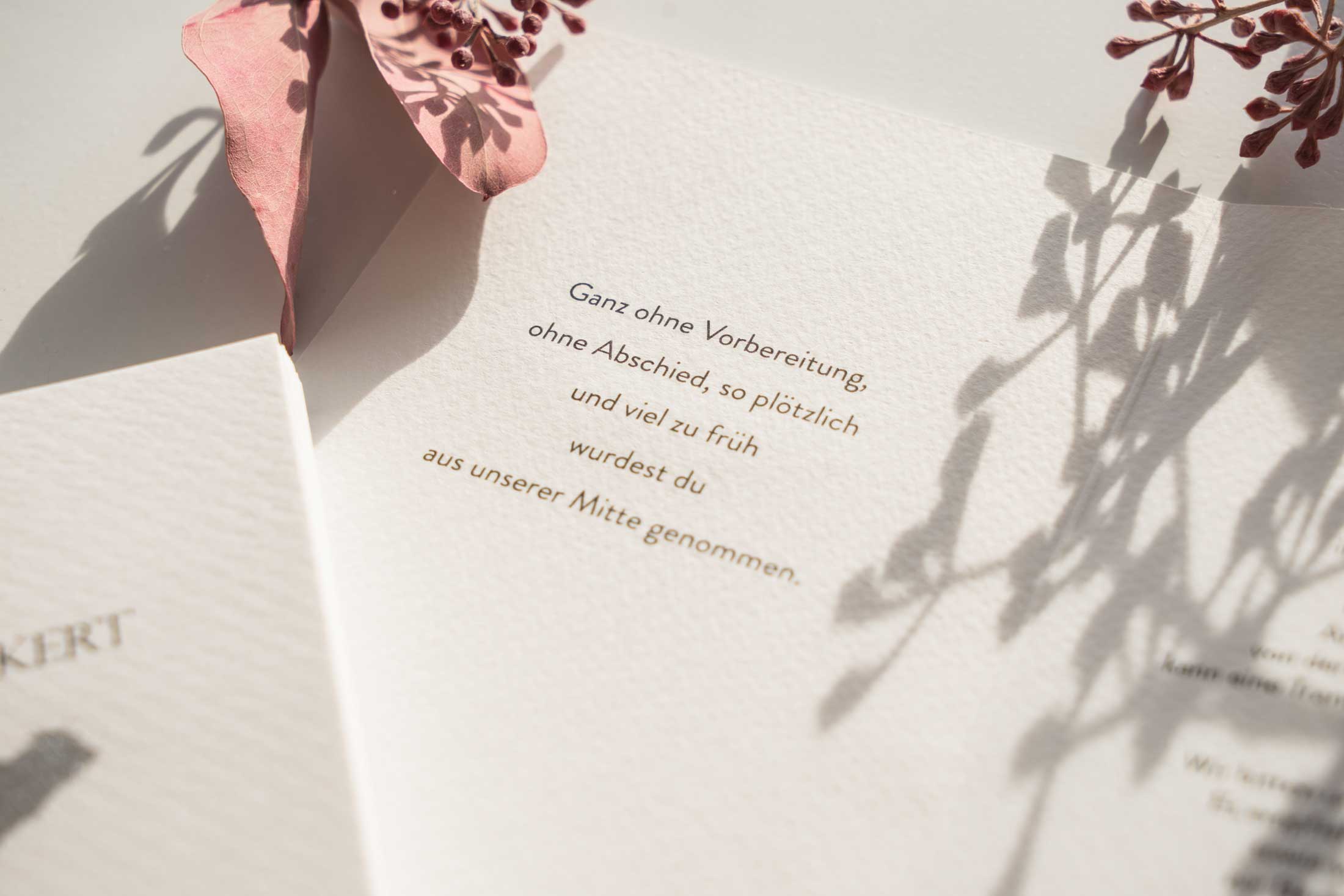 Ich lege großen Wert darauf, die individuelle Persönlichkeit der verstorbenen Person auf schönem Papier zu transportieren.